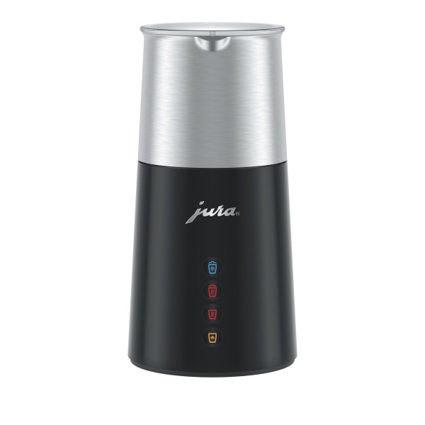 Ein besonderes Highlight stellt die Schokoladenmilch dar, die sich dank der leistungsstarken Technologie mit Stücken feiner Tafelschokolade zubereiten lässt. Das Design des Milchschäumers besticht durch eine elegante und funktionale Gestaltung. Mit nur vier Symbolen ist die Bedienung einfach und direkt. Der konische Sockel sorgt für einen sicheren Stand und fasst den Milchbehälter, sodass eine stilvolle und harmonische Einheit entsteht. Mit dem leicht geschwungenen Auslaufschnabel gelingt das Eingießen der aufgeschäumten Milch oder Schokoladenmilch präzise und sauber. Der Milchschäumer Hot & Cold ist die ideale Ergänzung für Pure-Coffee-Vollautomaten von JURA und wird schnell zum unverzichtbaren Begleiter bei der Kaffeezubereitung.